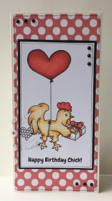 Nat has created a fun and colourful birthday card featuring a sweet baking themed character as the focal image. The image has been beautifully coloured in bright pink tones, creating a bold and eye catching centrepiece for the design.